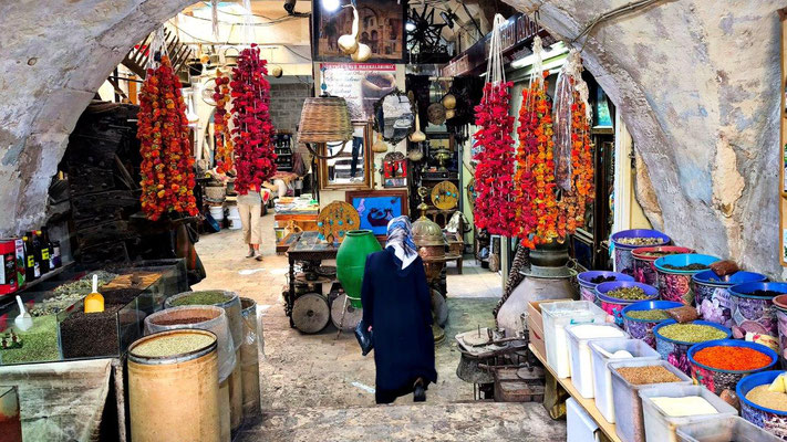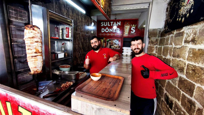 Das Wetter ist besser geworden, die Ventildeckeldichtung scheint dicht zu bleiben, die Mopette läuft wieder - sicher, hätte ich auch selber machen können, aber bei€40,-- für 4 Stunden muss das nicht sein. Und der Mechaniker lebt davon - juhuu!. Die Stadt liegt ganz wunderbar terrassenartig an den hang geschmiegt. Das heißt aber auch, viele Stufen, um ganz nach oben zu gelangen! Ganz oben verläuft die Hauptstraße, gesäumt von unzähligen Shops, gefüllt mit noch unzähligeren (türkischen) Touristen. Man kauft bunte Tücher und geröstete Mandeln in allen Farben. Uns begeistern die verwinkelten kleinen Gassen eine Etage tiefer - ein sehr ursprünglicher alter Bazar versteckt sich dort. Das Endspiel der Meisterschaft bringt am Samstag Polizei mitsamt schwerem Gerät auf die Straßen - aber außer lautem Gehupe und wehenden Fahnen passiert nichts. Abends singt dafür der Muezzin noch lauter und taucht die schöne Stadt in eine orientalische Klangwolke. Am Tag 3 überraschen uns noch Elisabeth und Edi aus OÖ und so verbringen wir einen gemütlichen gemeinsamen Abend bevor wir weiter westwärts ziehen und die Beiden nach Osten.